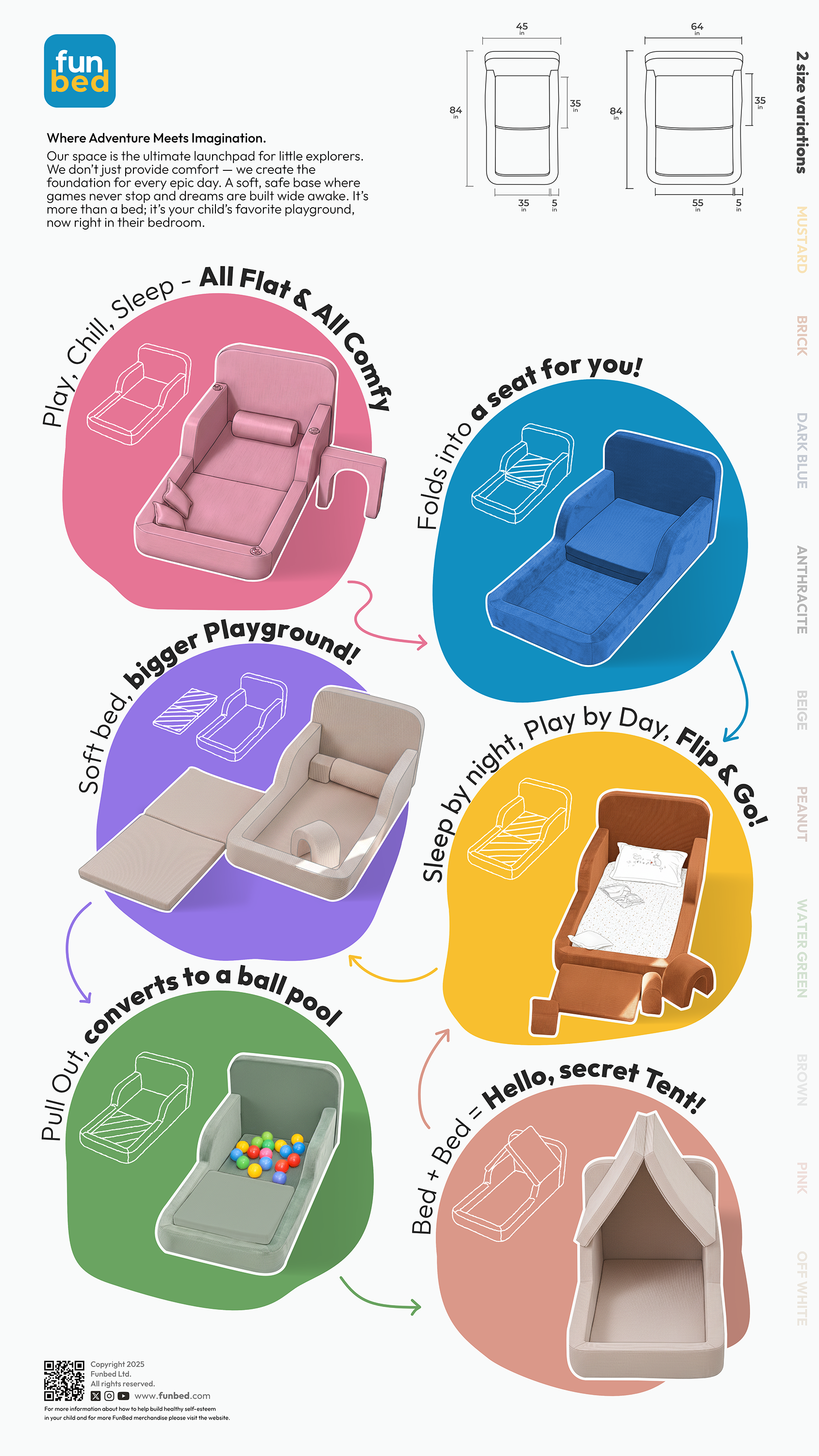 From soft pastels to bold tones, Funbed comes in ten colors to fit your style — and your child’s unique spirit.