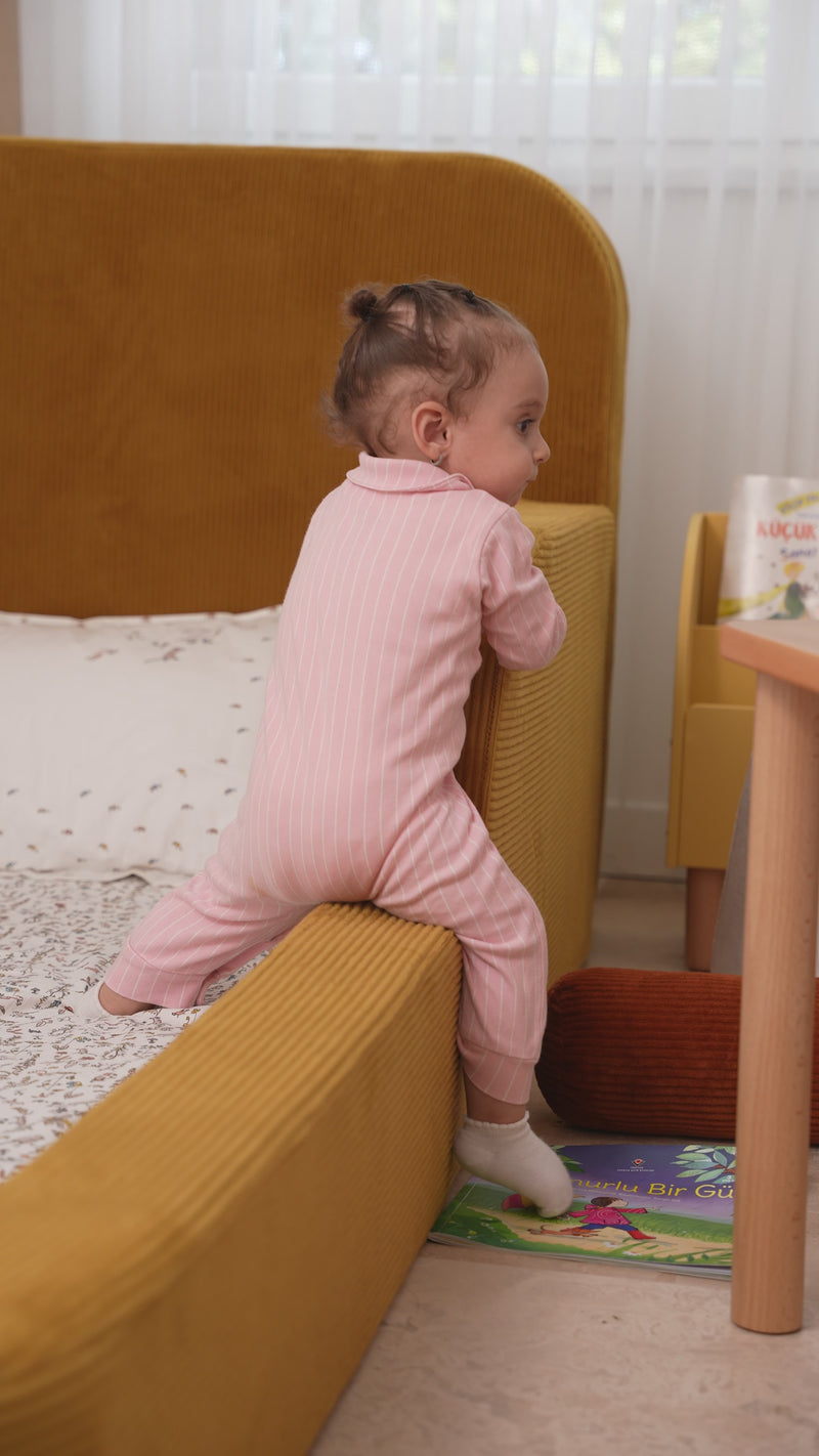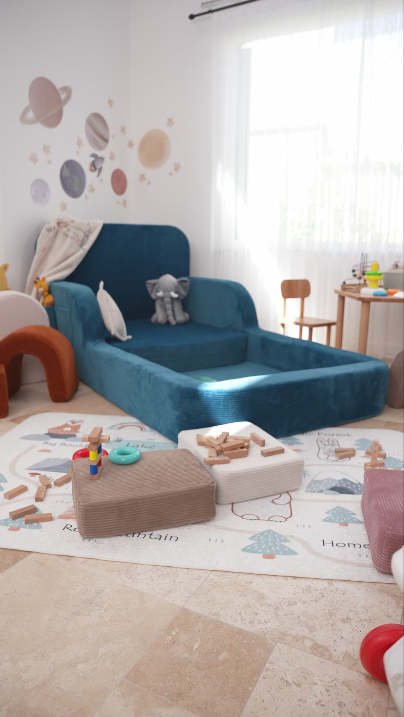 Funbed transforms any bedroom into a playground of imagination. Its soft, high-density foam design ensures comfort and safety, wrapped in plush corduroy with smooth, rounded edges. ✨